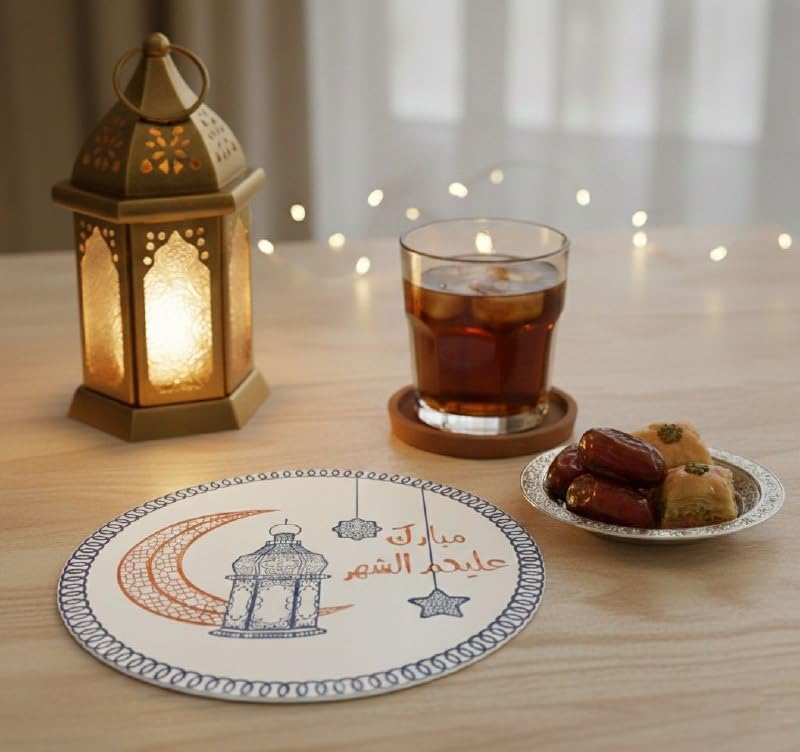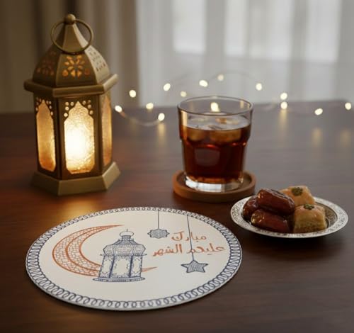 - تصميم متعدد الاستخدامات: قواعد أكواب دائرية أنيقة وأنيقة تتميز بزخارف إسلامية مزخرفة، مثالية لإضافة لمسة من الرقي إلى منزلك خلال احتفالات رمضان والعيد