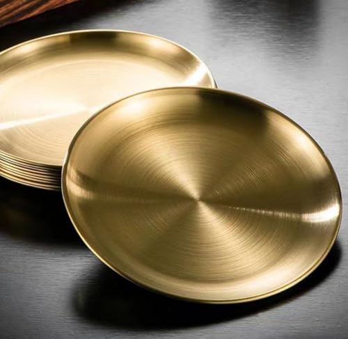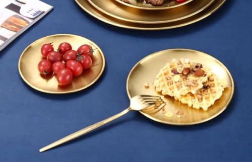 Generic - جيني طبق حلوى دائري صغير مذهب، 14 سم، لمسة نهائية ذهبية، للكنافة والبسبوسة والمكسرات