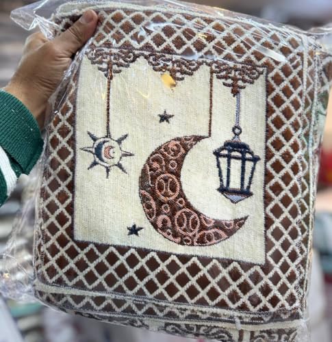 - تصميم أنيق: يتميز بنقوش راقية للهلال والنجوم بدرجات اللونين البيج والذهبي مع حواف هندسية مزخرفة تضفي لمسة من الأناقة على أي مساحة معيشة.