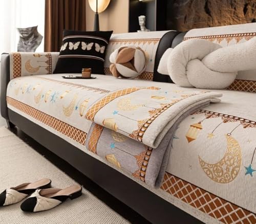 Generic - أغطية كنب من الكتان بتصميم هلال ونجوم، مجموعة من 10 قطع مع أغطية الكنب والخداديات (أبيض وذهبي)