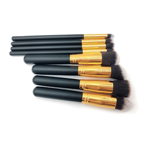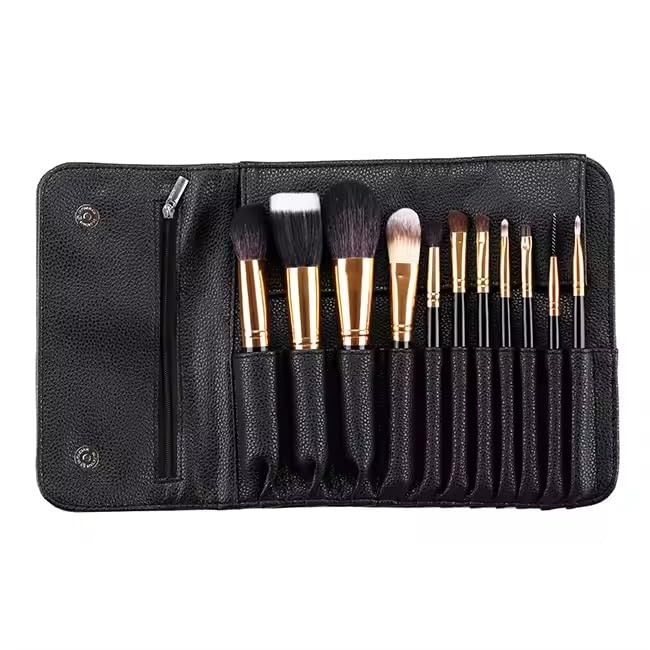 - طقم يتضمن 10 فرش مكياج مختلفة مع محفظة سهلة الحمل.