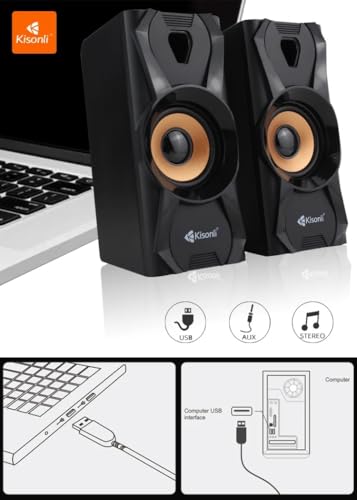 Generic - سماعات كمبيوتر U-9003 بقدرة 6 وات - مزودة بمنفذ USB وAUX - تقنية ستيريو 2.0 - لون أسود