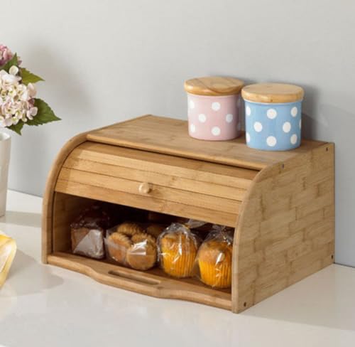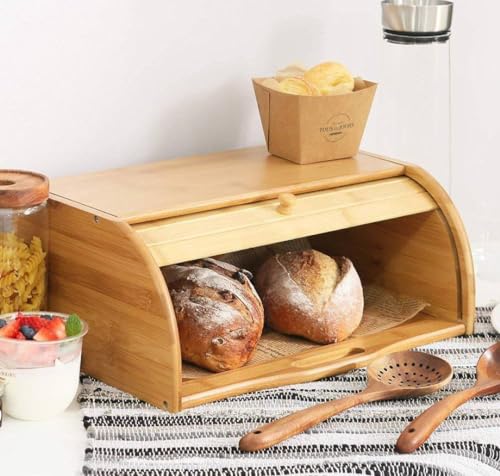 Generic - صندوق خبز خشبي مع غطاء علوي ملفوف، 42 × 28 × 17 سم، طبيعي.اي ام دي