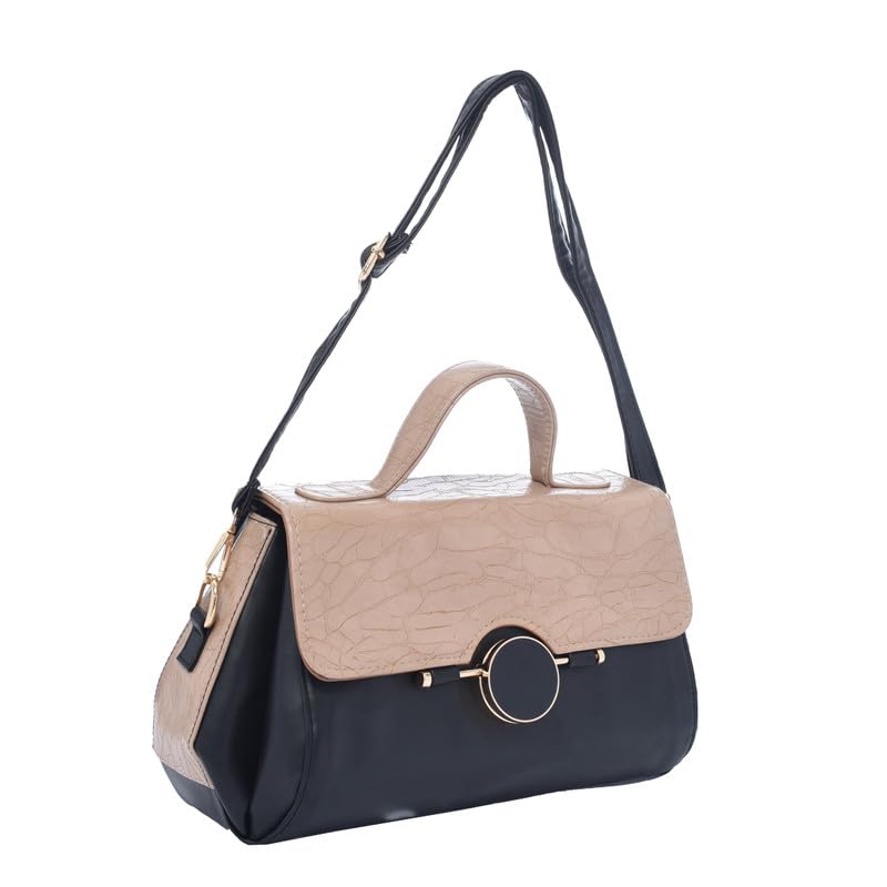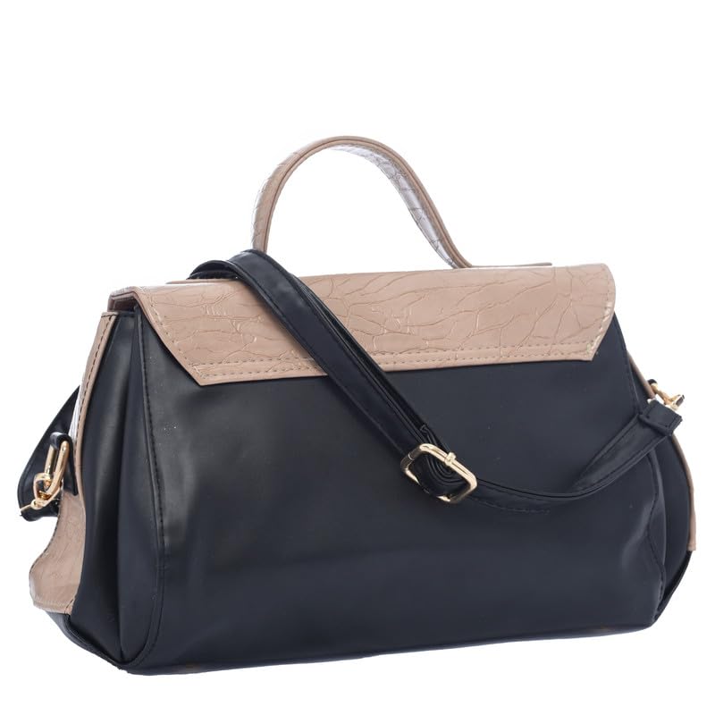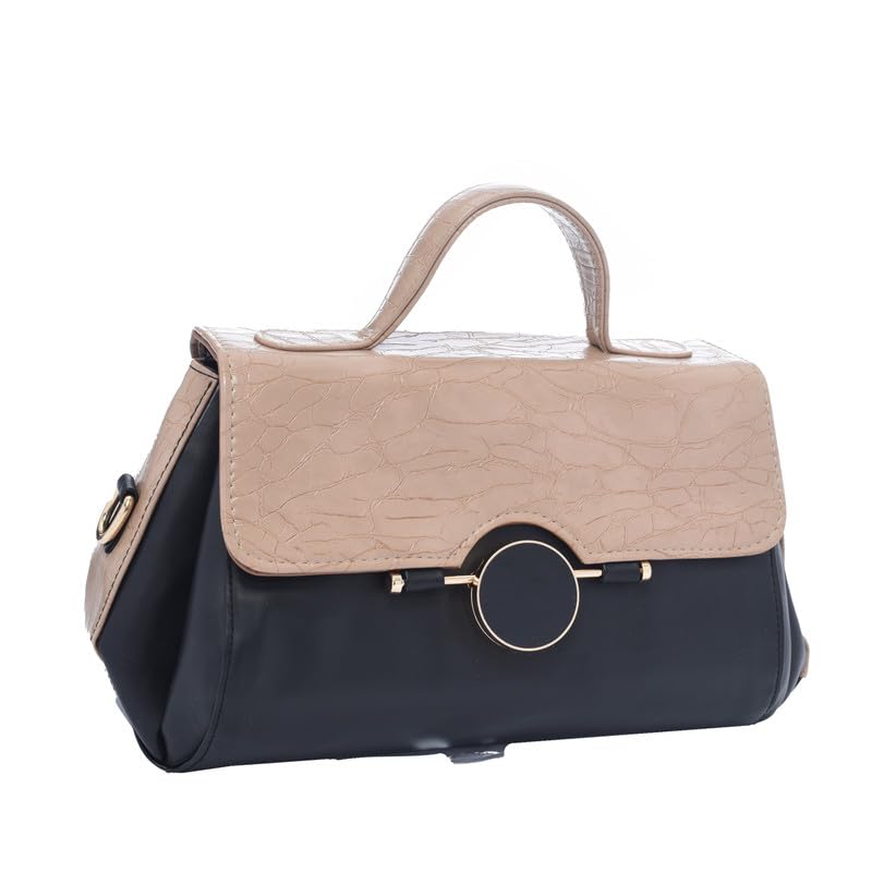 genuine - جينوين شنطة يد انيقة من الجلد مع زر امامي للحقيبة لون اسود وبيج للنساء
