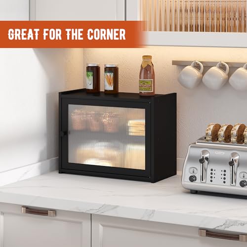 GHWIE - صندوق خبز لسطح طاولة المطبخ، حاوية خبز كبيرة بتصميم ريفي لتخزين الخبز، مصممة بنافذة وحامل لتخزين الخبز من GHWIE، لون أسود