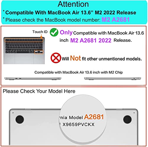 - يرجى التحقق من رقم الموديل "Axxxx" على ظهر جهاز ماك بوك قبل الشراء، والتأكد من اختيار نفس رقم الموديل الموضح في عنوان القائمة "A2681". تصميم بدون فتحات، تختلف الشفافية من لون لآخر.