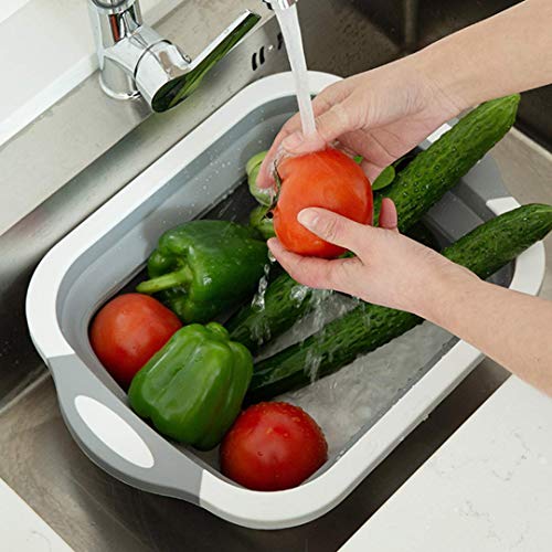 GION - لوح تقطيع سيليكون متعدد الوظائف قابل للطي بتصميم سلة تخزين مزودة بسدادة تصريف لحوض المطبخ، بلانشة من جيون