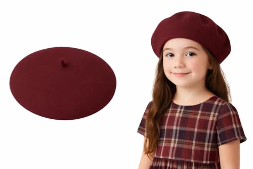 Generic - قبعة بيريه فرنسية للبنات، بورغندي، نمط كلاسيكي، اكسسوار عصري للاطفال