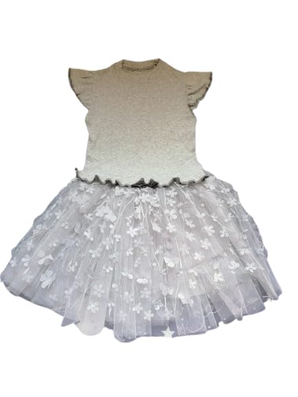 Generic - تنورة للبنات مع زهور، لون رمادي فاتح، مقاس 2-10 سنوات (8-9year)