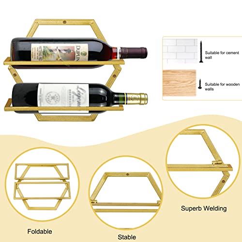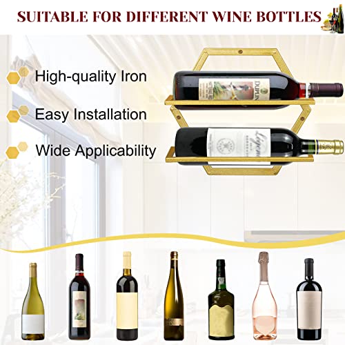 Giyiprpi - حامل زجاجات معدني يثبت على الحائط مع رف للكؤوس الزجاجية، منظم زجاجات معلق على الحائط مع 3 حاملات للكؤوس الزجاجية، مناسب للمطبخ أو البار أو العرض المنزلي، مجموعة من قطعتين، (لون ذهبي BB)