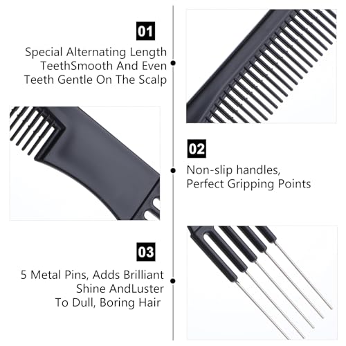 - تصميم خاص - يتميز بـ 5 أسنان من الفولاذ المقاوم للصدأ بتناوب بين أسنان طويلة وحواف مسننة. لفك تشابك الشعر بسهولة مع دبوس الشعر. بالإضافة إلى نقاط إمساك تساعد على تثبيت خصلات الشعر والوصلات بثبات، مع مقبض مانع للانزلاق يسهّل تنفيذ معظم التسريحات. كما تم تصميم أمشاط الشعر الخاصة بنا للنساء بشكل مريح يقلل إجهاد المعصم ويجعل التصفيف أسهل وأكثر راحة.