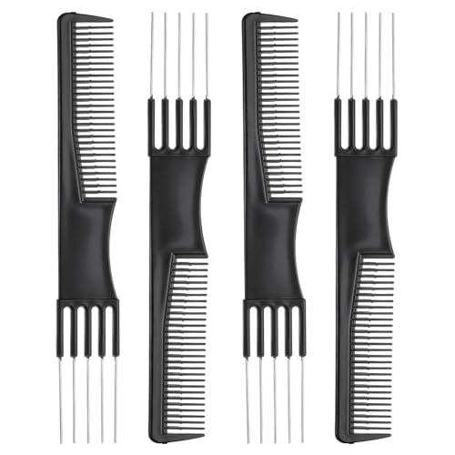 Gjinxi - مجموعة أمشاط توبي برأس مزدوج ورأس معدن على شكل شوكة، مشط للشعر مع شوكة من المعدن للنساء ذوات الشعر الطويل المجعد والمبلل من جينكسي، عبوة من 4 قطع