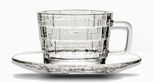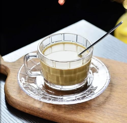 - تصميم أنيق: طقم فناجين قهوة وأطباق من الزجاج الشفاف يتميز بنقش هندسي متطور مثالي لتقديم الكابتشينو واللاتيه.