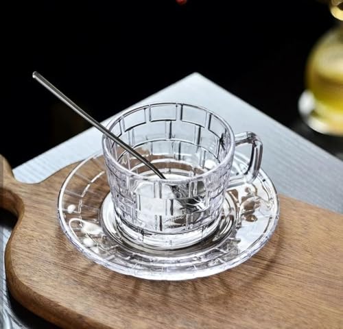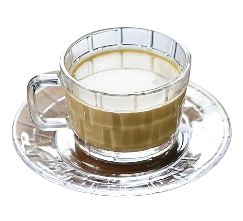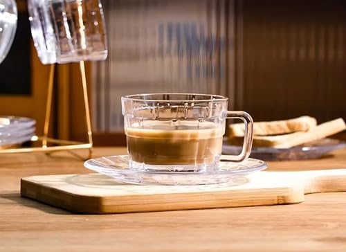 Generic - طقم فناجين قهوة وأطباق زجاجية، نقشة زجاج شفاف، سعة 200 مل، 12 قطعة، 6 أكواب، 6 أطباق