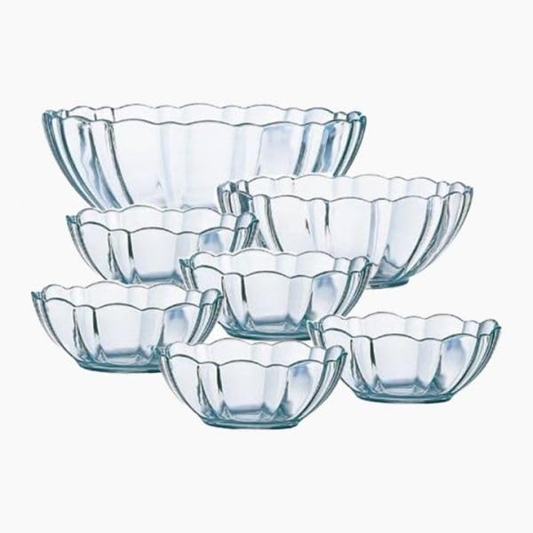 Generic - طقم اوعية حلوى زجاجية، تصميم حافة صدفية، 7 قطع، شفاف