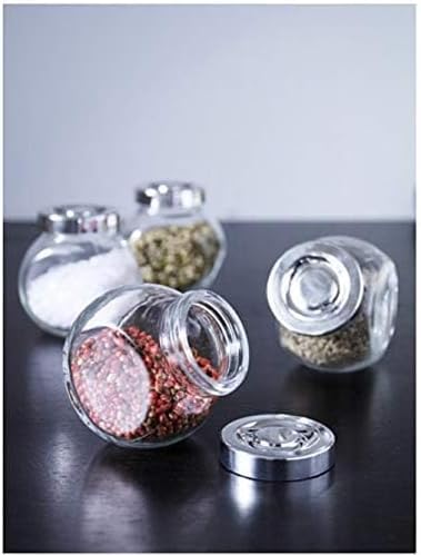 - محتويات المجموعة: تتضمن العبوة 4 برطمانات توابل زجاجية شفافة متطابقة مع أغطية بيضاء مطابقة للتخزين المنظم