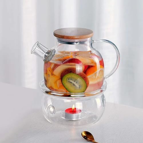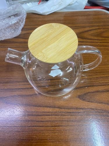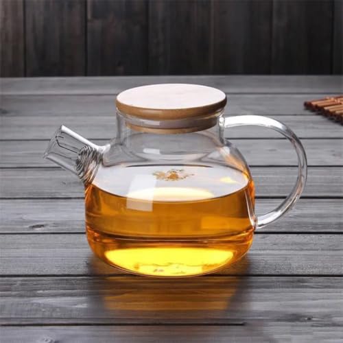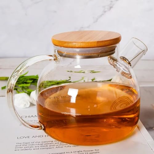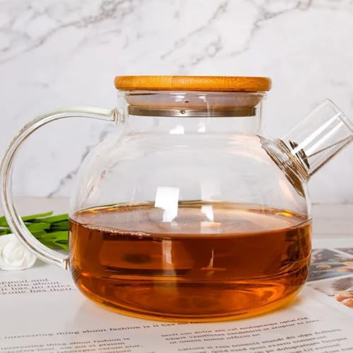 Generic - ابريق شاي تقديم من الزجاج مع ملف فلتر مع مصفاة للشاي السائب، بغطاء من البامبو مع قاعدة من الستانلس ستيل ولفائف فلتر سعة 1000 مل