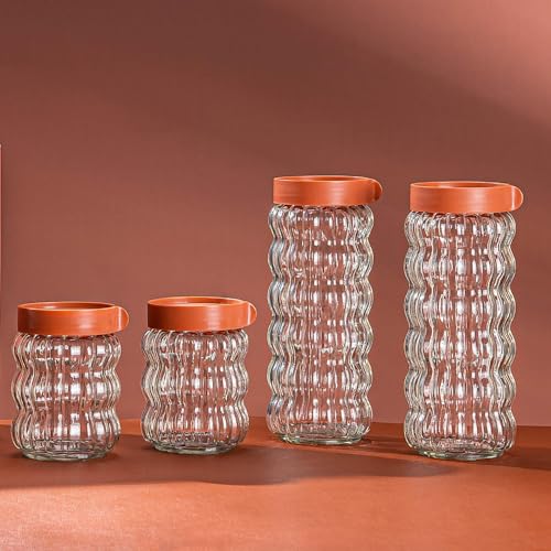 - تم تصميم هذه المجموعة من برطمانات التخزين الزجاجية بشكل أنيق وأنيق مع زجاج شفاف مزخرف يوفر مظهرًا ممتازًا مع سهولة رؤية المحتويات المخزنة، مما يجعل التنظيم جماليًا وعمليًا.