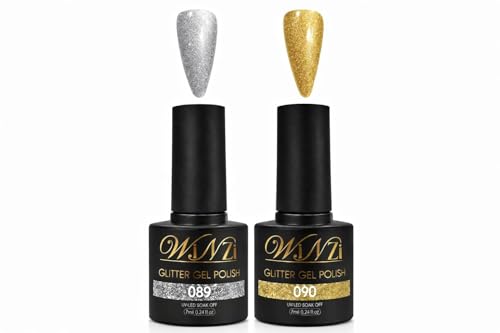 WINZI - Glitter Gel Nail Polish Set, Gold & Silver Sparkle Colors, Soak Off UV LED Gel, High Shine Long Wearing Formula, Easy Application for Nail Art & Salon Use, 7ml easch (Shades 089,090)