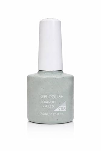 - تتميز درجة لون 703 بقاعدة جل شفافة مع جزيئات لامعة زرقاء عادية للحصول على تأثير لامع ناعم.