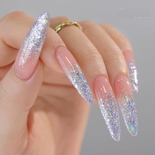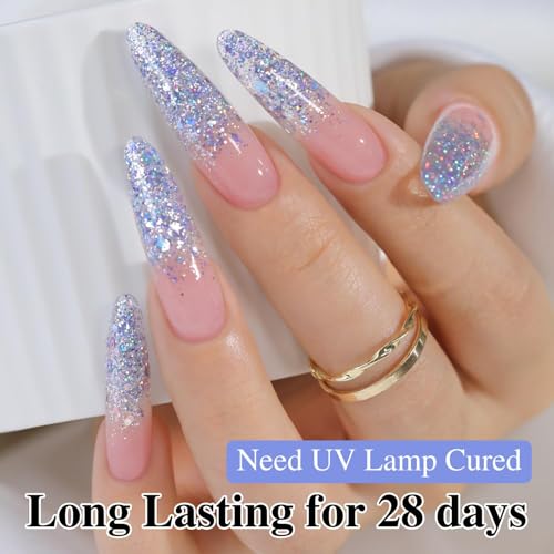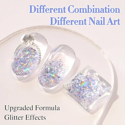 - جل لامع شفاف يسمح للأظافر الطبيعية أو اللون الأساسي بالبقاء مرئيًا مع إضافة بريق أزرق.