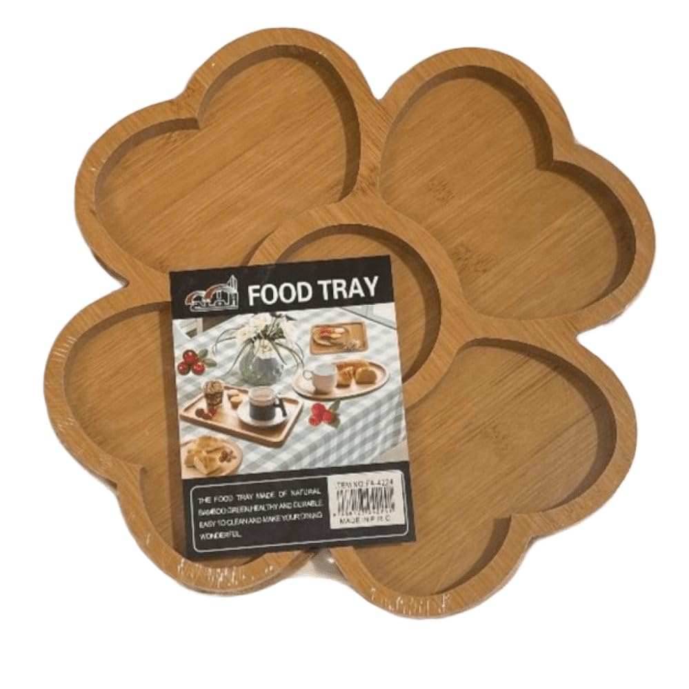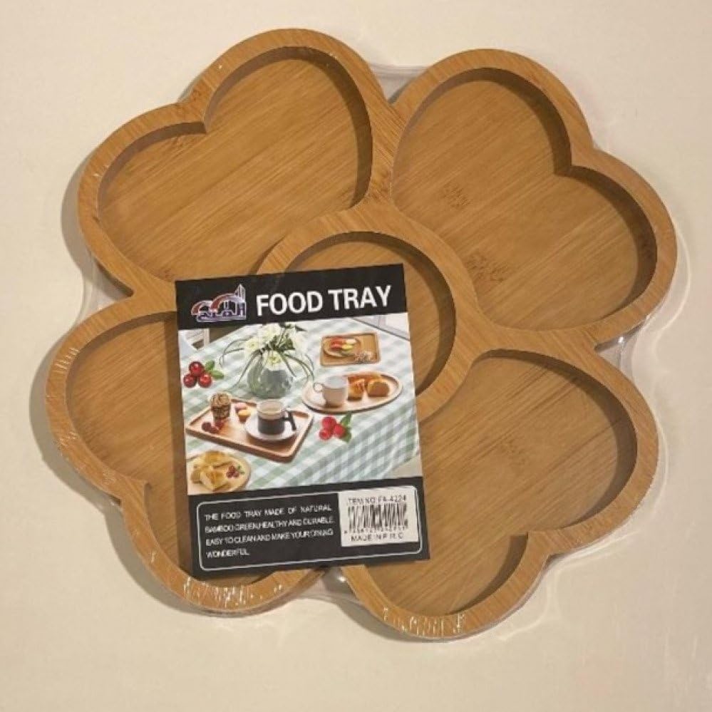• صينية خشبية على شكل وردة تتميز بتصميمات قلوب.