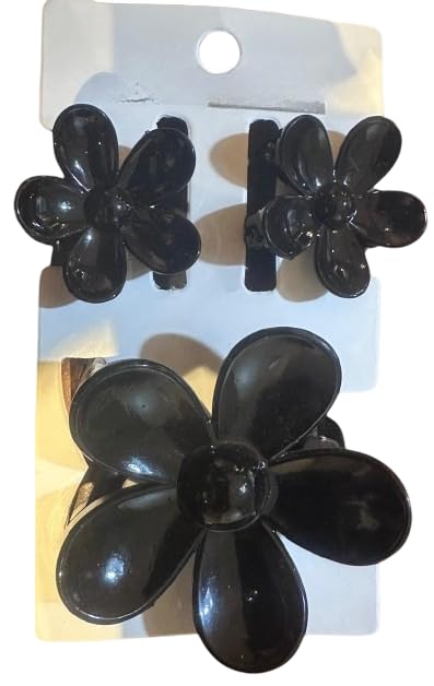 GOGO.EG - مجموعة مشابك شعر بتصميم زهرة سوداء من غوغو.ايج، 3 قطع - RM15