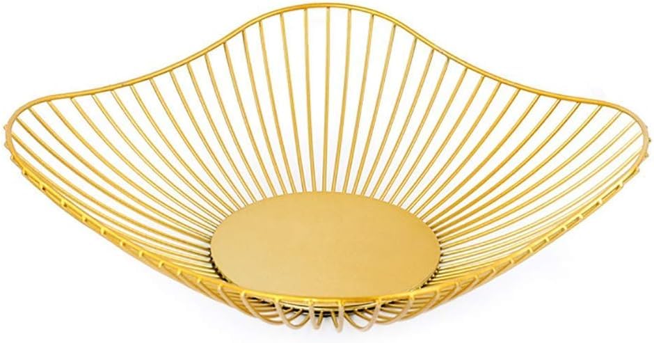 Generic - سلة فواكه من أسلاك معدنية ذهبية - منظم وعاء فاكهة مزخرف بإطار معدني لغرفة المعيشة ، المطبخ، سطح الطاولة