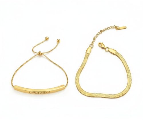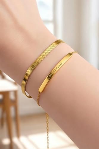 Generic - مجموعة سوار لوفر دريم ديو من الفولاذ المقاوم للصدأ المطلي بالذهب - شريط محفور وسلسلة ثعبان