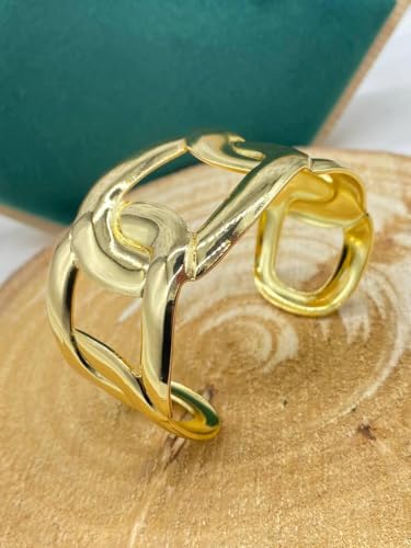 Generic - سوار عريض بسلسلة متشابكة بلون ذهبي
