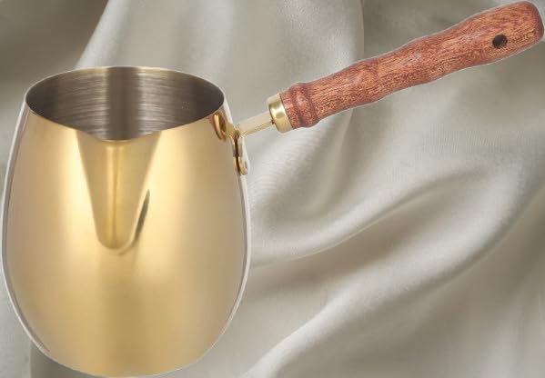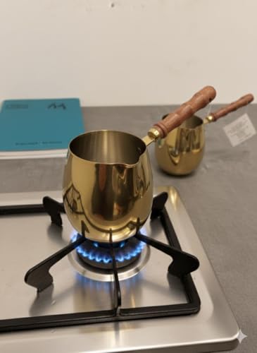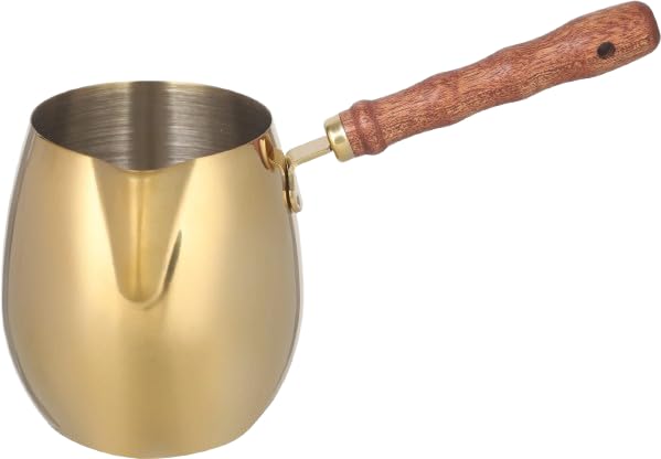 Generic - كنكة قهوة ذهبي بيد خشب لتحضير القهوة على البوتاجاز وعاء تحضير القهوة بحجم عملي مع يد مريحة لسهولة الاستخدام اليومي في المطبخ (مقاس 450 مللي)
