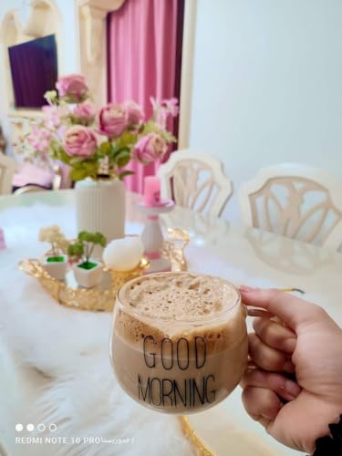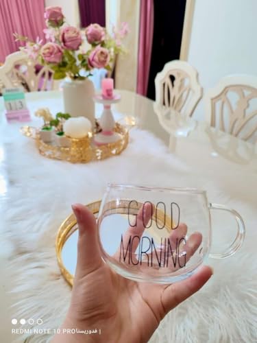 Generic - مج الكابتشينو التريند جود مورنينج مستورد شكل بيضاوى سعه 400 مللي يستخدم علي النار مباشرة، شفاف