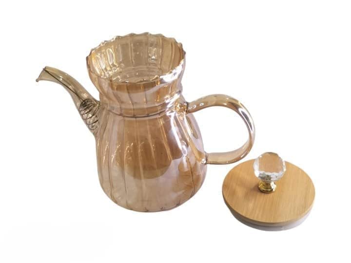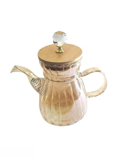 Generic - شفشق ماء زجاجي رائع مع غطاء خشبي، غلاية ماء زجاجية، براد شاي من زجاج البوروسيليكات قابل للتسخين على الموقد، براد شاي زجاجي للشاي والقهوة (650 مل)
