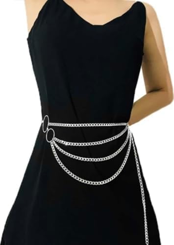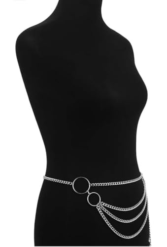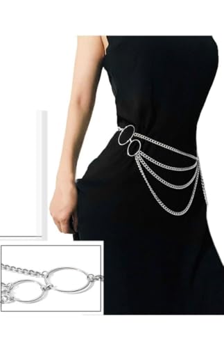 Generic - سلسلة خصر رائعة متعددة الطبقات، سلسلة دائرية للبيكيني والخصر الطويل للرقص، مجوهرات للنساء والبنات، (فضي)