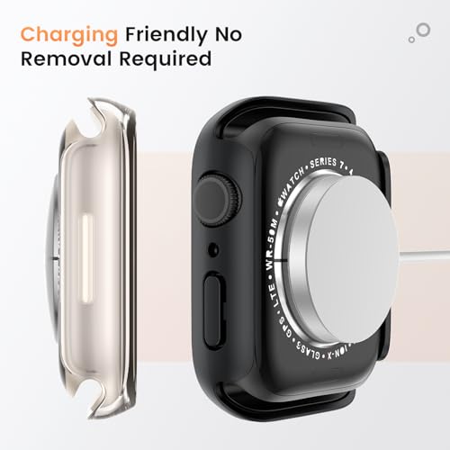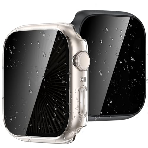 Goton - جوتون جراب حماية الخصوصية مقاوم للماء لساعة ابل سلسلة 10 مقاس 46 ملم، واقي شاشة صلب من الزجاج المقوى ممتص للصدمات من البولي كربونات لملحقات غطاء اي ووتش، 46 ملم، اسود شفاف