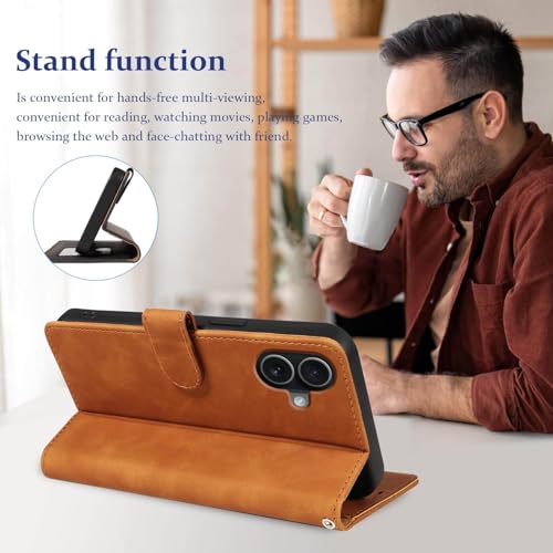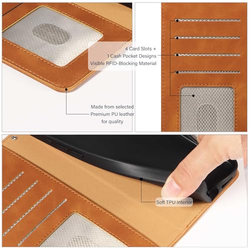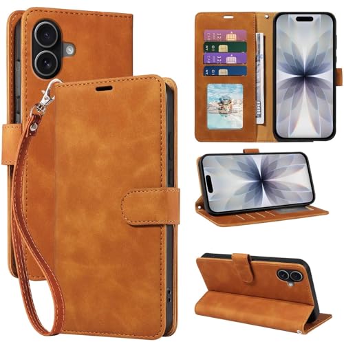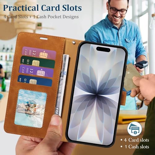 GOTOURED - جراب موبايل ايفون 17 من جوتوريد، حافظة حماية من الجلد الصناعي قابلة للطي مع 4 فتحات للبطاقات وحزام معصم ومسند وقفل مغناطيسي وواقي مضاد للصدمات من جلد البولي يوريثين لموبايل ايفون 17 (بني)