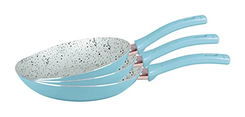 Grandi Cook - طقم طاسات قلي جرانيت لمجموعة بوب من جراندي كوك، 3 قطع - تركواز وابيض