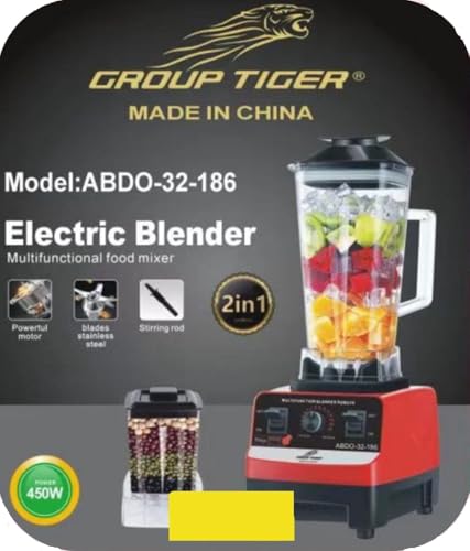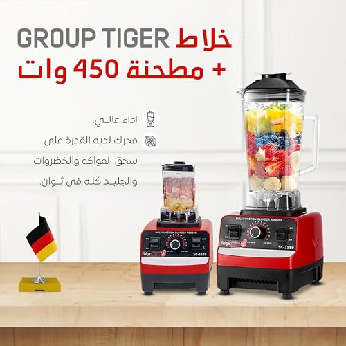 GROUP TIGER - جروب تايجر خلاط كهربائي عالي الاداء، 450 واط، احمر، موديل SC-1589، خلاط طعام متعدد الوظائف 2 في 1 مع مطحنة