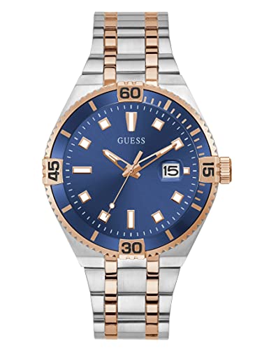 GUESS - ساعة يد كوارتز بسوار من الستانلس ستيل للرجال جيس لون فضي 20 موديل: GW0330G3 - ذهبي وردي - أزرق