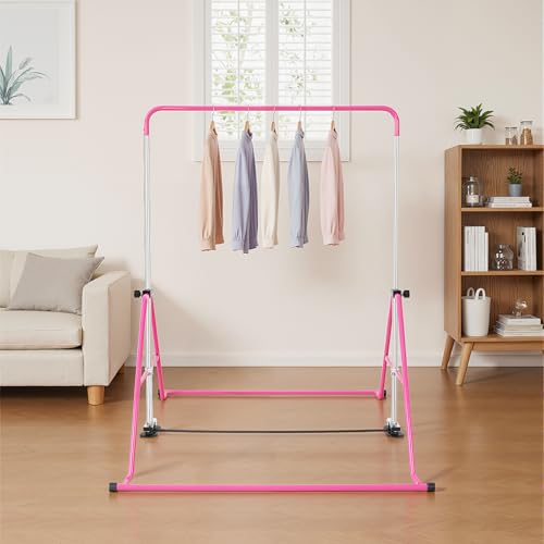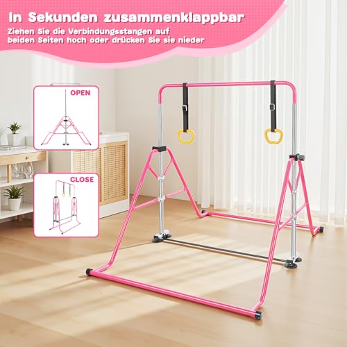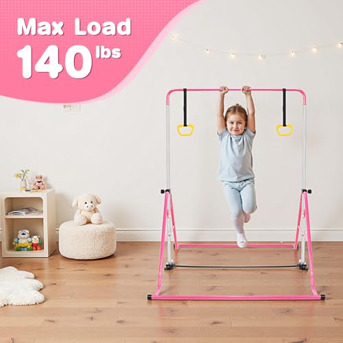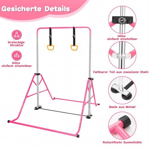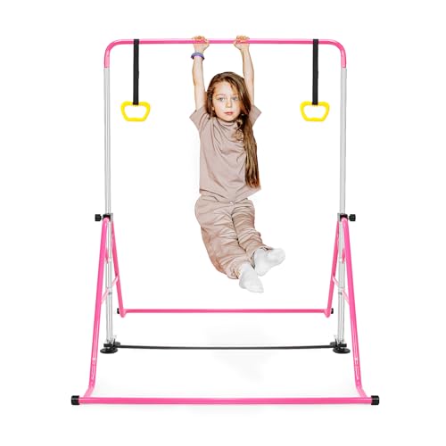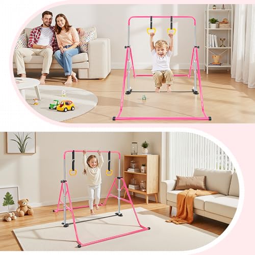 Vnierxful - قضبان جمباز مع حلقات جمباز، عمود تلسكوبي قابل للتعديل للاطفال، ارتفاع قابل للتمدد، قضيب افقي قابل للطي للاطفال، تدريب صالة الالعاب الرياضية المنزلية