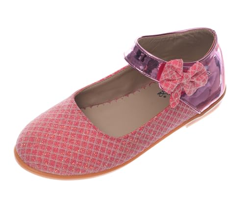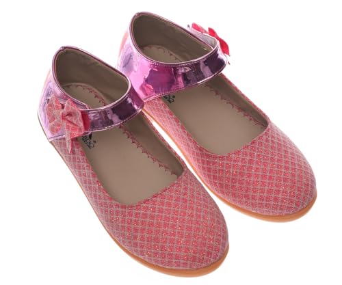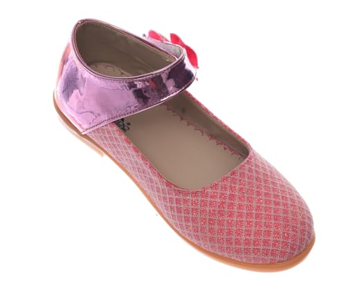 HA - اتش ايه حذاء باليرينا جلد لامع مسطح للبنات مع اشرطة جانبية بلاصق فيلكرو وفيونكة جانبية