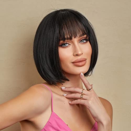 HAIRCUBE - باروكة شعر مستعار بوب اسود مع غرة انيقة للنساء من هير كيوب