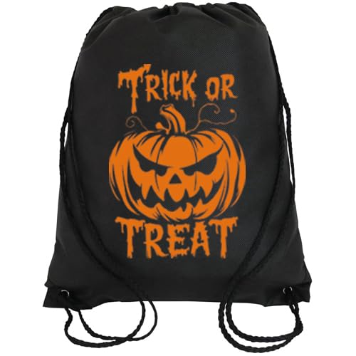 Generic - شنطة ظهر برباط للخداع او الحلوى للهالوين، لون اسود مع تصميم اليقطين البرتقالي