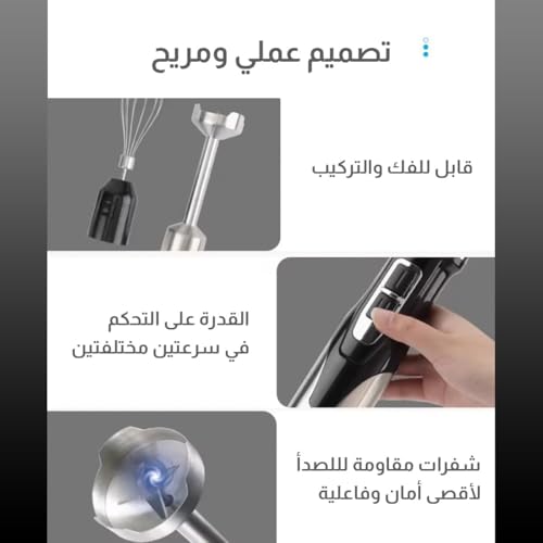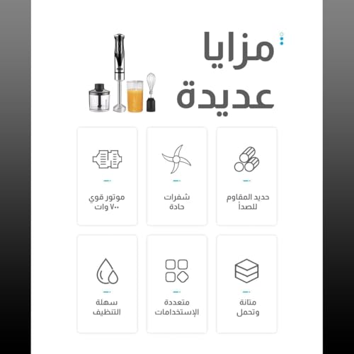 - خلاط يدوي قوي للوجبات اليومية - محرك نحاسي بتيار مستمر 700 وات، يساعد على هرس الطعام والملوخية والصلصة بسلاسة وبجهد أقل، لذلك يصبح العشاء أخف بعد يوم طويل من العناء.