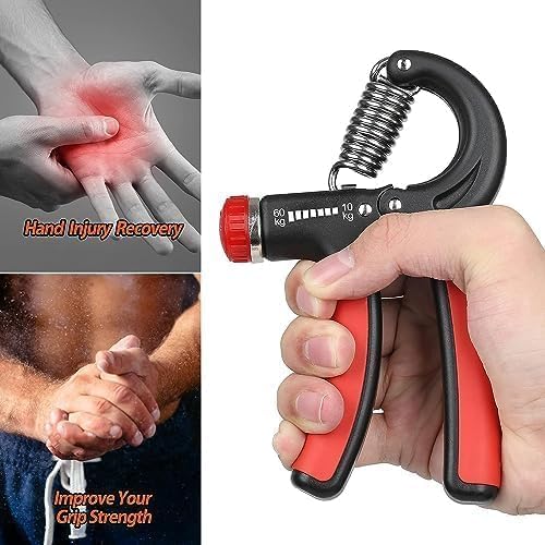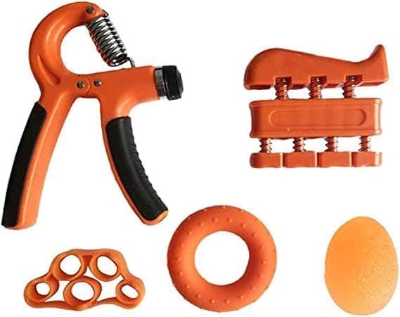 Generic - مجموعة تمارين تقوية اليد – قبضة يد قابلة للتعديل، عصابات مقاومة للأصابع، ضغط كرة البيض، حلقة قبضة اليد، 5 قطع – لون برتقالي – تمارين اليد، القوة، المرونة والتناسق