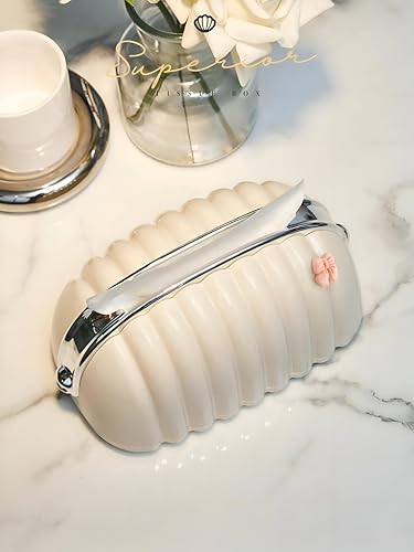 Generic - علبة مناديل عملية تشبه شنطة اليد، مزينة بأناقة بفيونكة ومزودة بسوستة موثوق بها لسهولة سحب المناديل وتخزينها بشكل أنيق