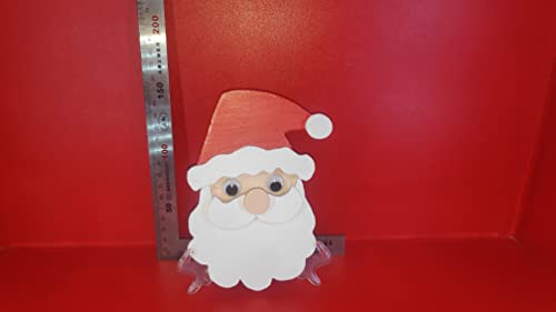 Generic - وجه بابا نويل صناعه يدويه من الخشب متعدد الطبقات، أحمر