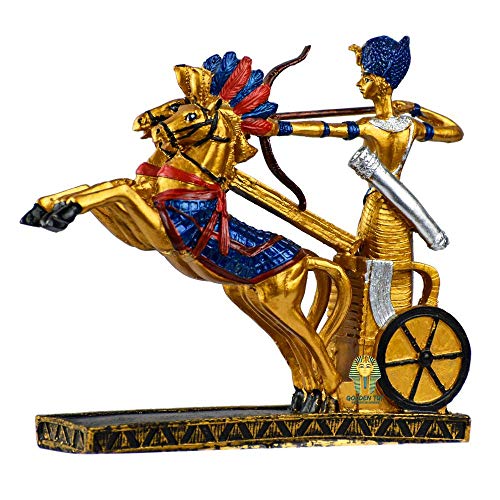 Other - منتج مصرى فرعونية يدوي الصنع من البورسلين من جولدن توت، عربة حرب الملك رمسيس، الارتفاع 14 سم، العرض 18 سم - متعدد الالوان