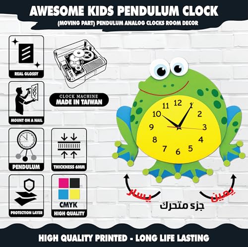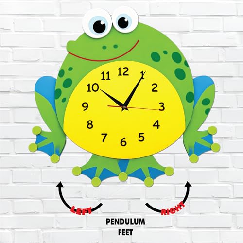 Generic - ساعة حائط ببندول متحرك بتصميم بشكل ضفضع مبهج مع قدم متجرك، ألوان زاهية وجودة عالية، حركة هادئة بدون صوت، سهلة التعليق، تضيف لمسة ديكور جذابة وتناسب جميع الأذواق