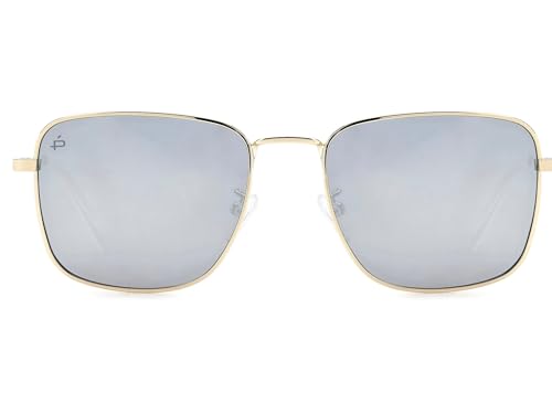 Happy Vision - نظارة شمسية مربعة معدنية للرجال من هابي فيجن باطار ذهبي 55 ملم وعدسات مستقطبة بلاتينيوم - برايف ريفو
